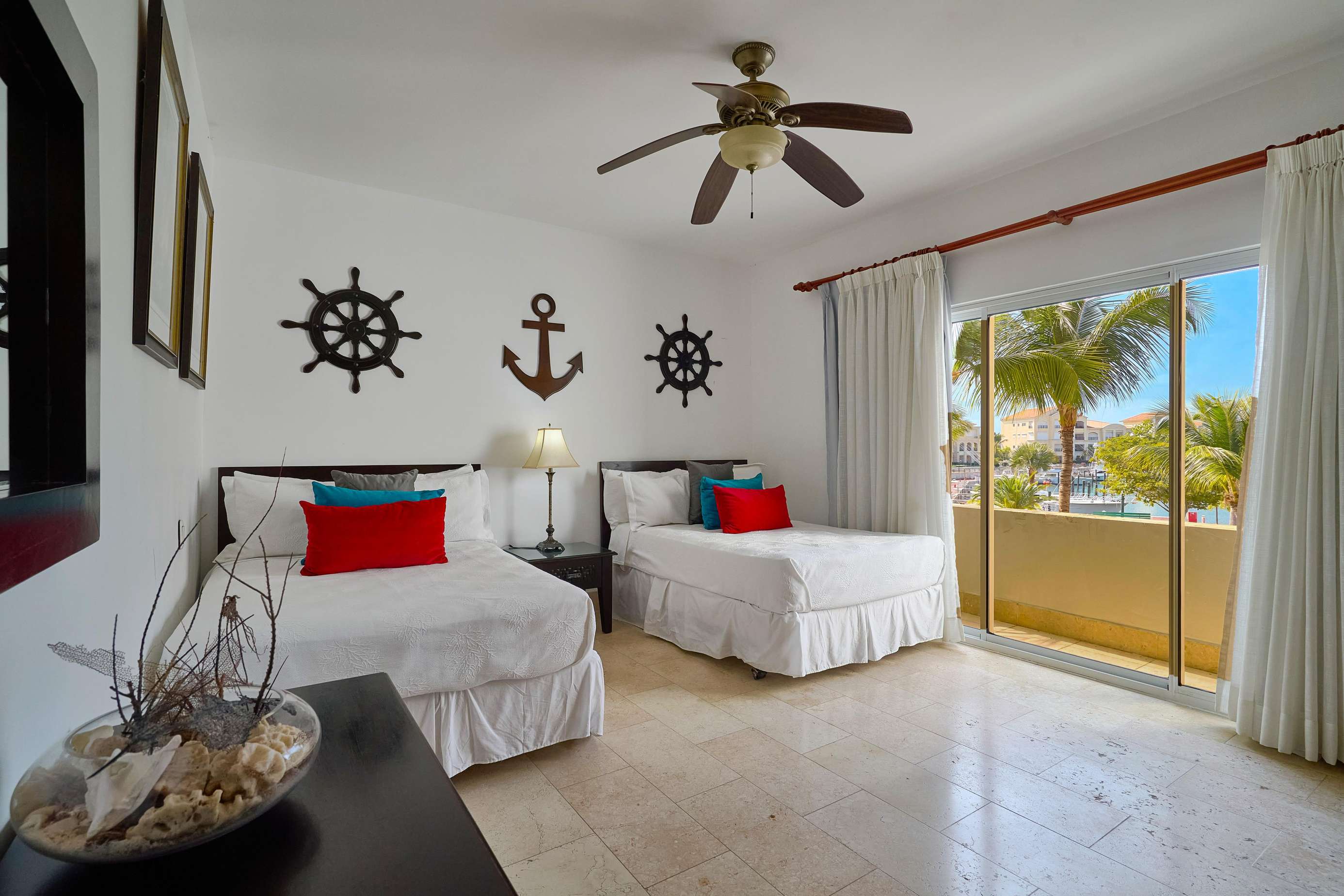 This second floor apartment features 2 spacious bedroom, the master bedroom with palms and beach views while the secondary bedroom overlooks the beautiful Marina. Full equipped kitchen, dining area and comfortable and chic living room. Our guests favorite? The big and bright terrace! Relax at the terrace breathing fresh ocean breeze and enjoying the view.