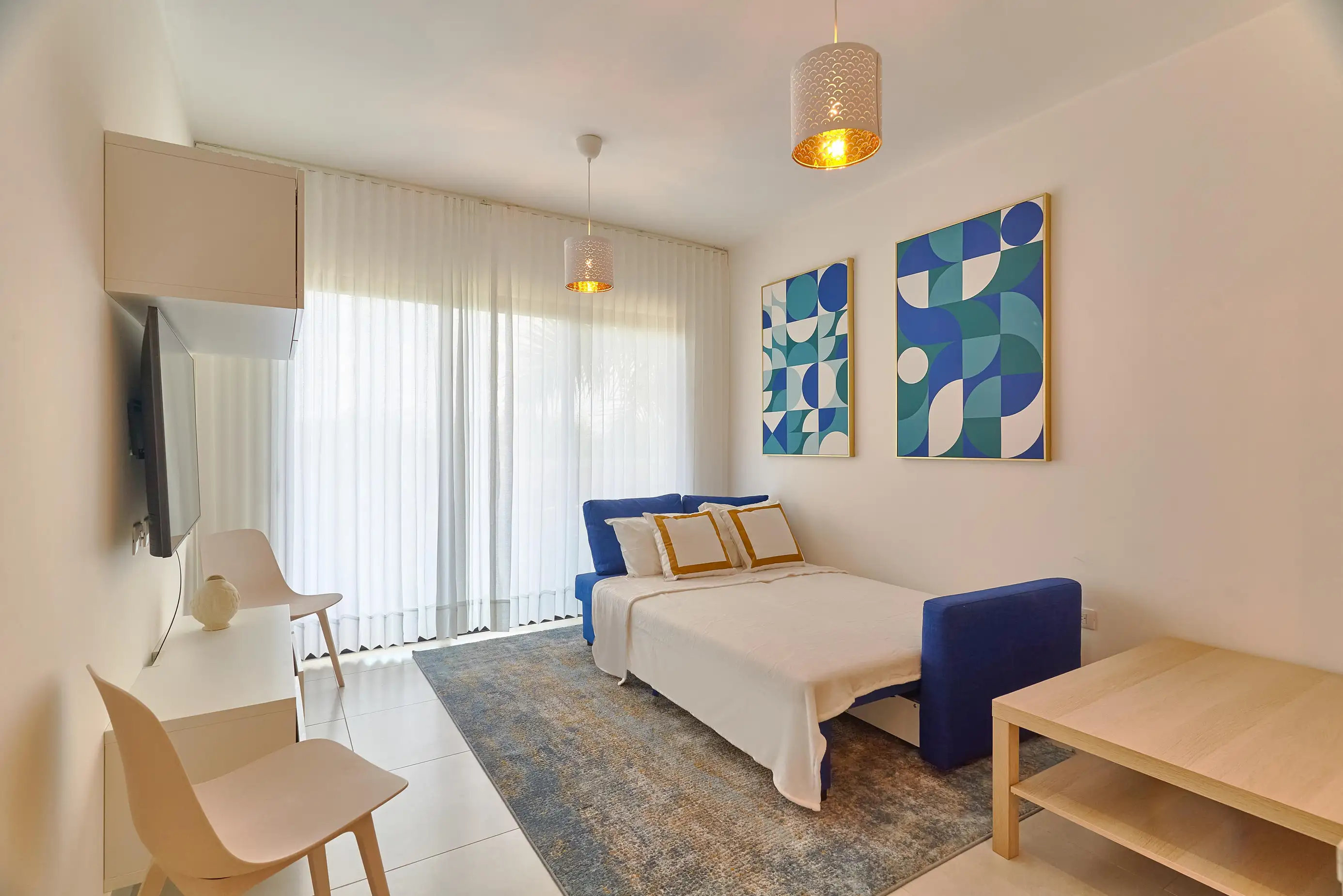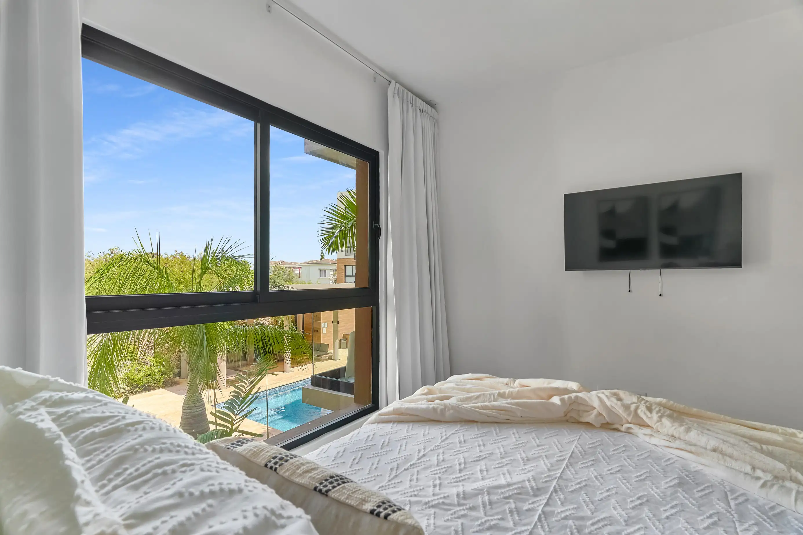 This beautiful pool view apartment will captivate you with its elegant scenery and make you feel at home, featuring one bedroom with queen bed and full bathroom, bright living room area with sofa, fully equipped kitchen with everything you might need