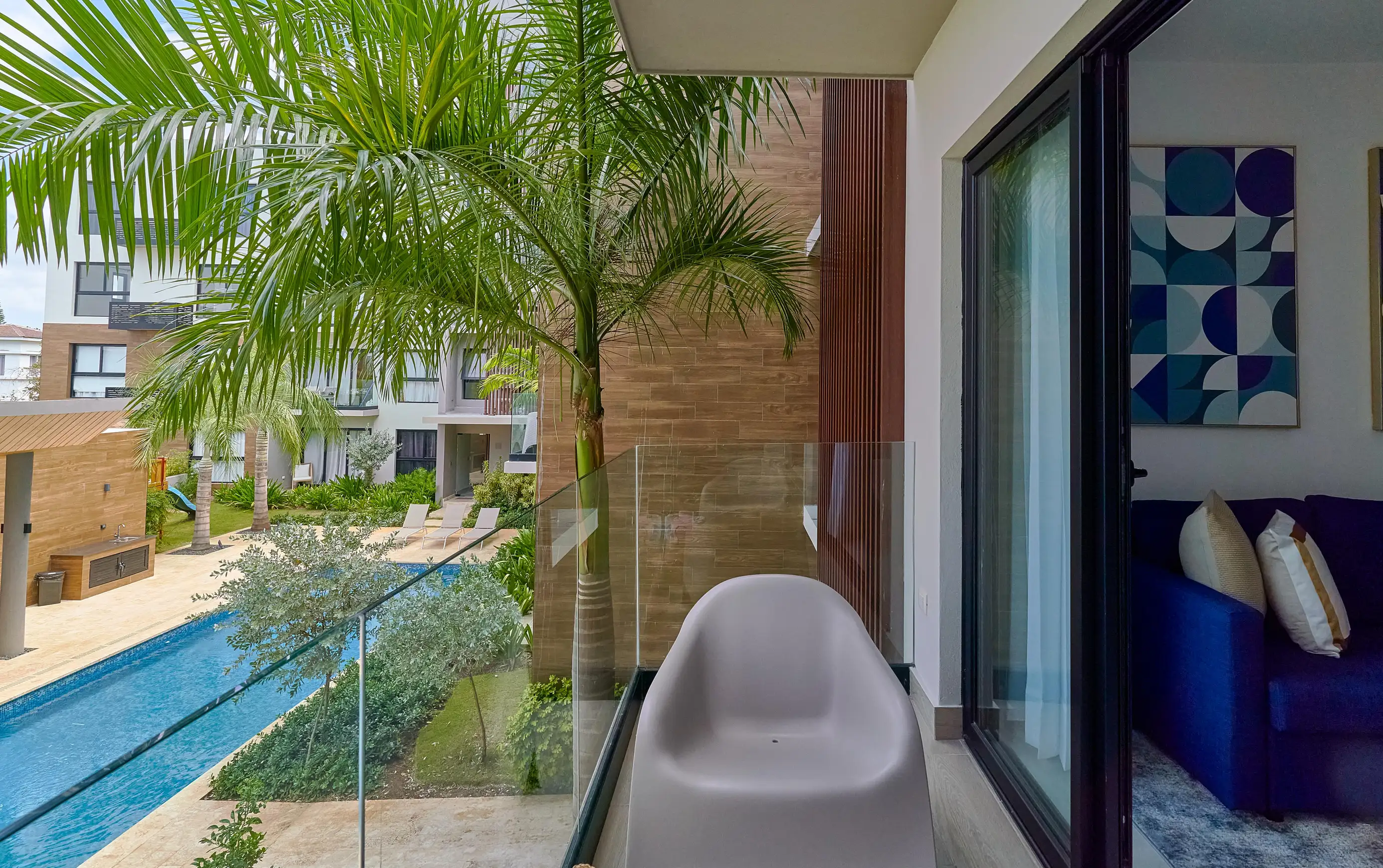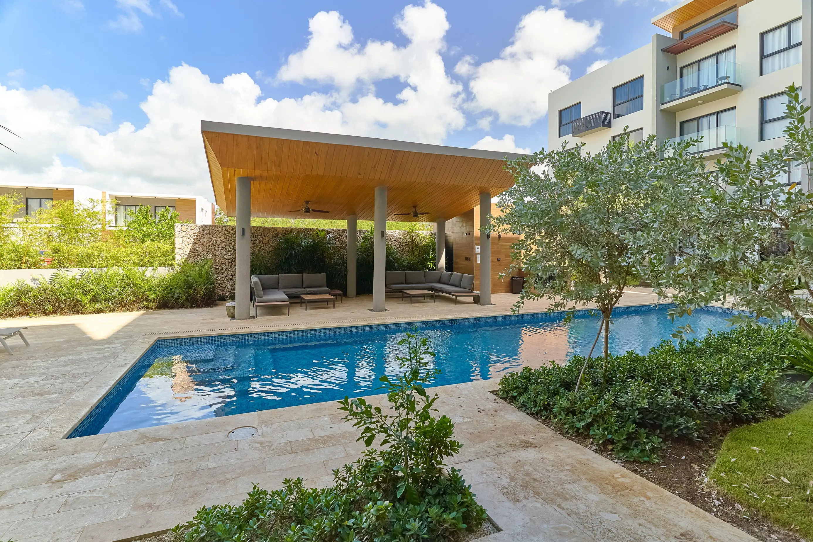 This beautiful pool view apartment will captivate you with its peaceful scenery, featuring one bedroom with queen bed and full bathroom attached, beautiful living room area with sofa bed, fully equipped kitchen with everything you might need, laundry area, A/C on every room, all within the safe and beautiful Cap Cana grounds where you'll have everything minutes away: restaurants, shops, supermarkets, gym, spas, airport, malls and more!