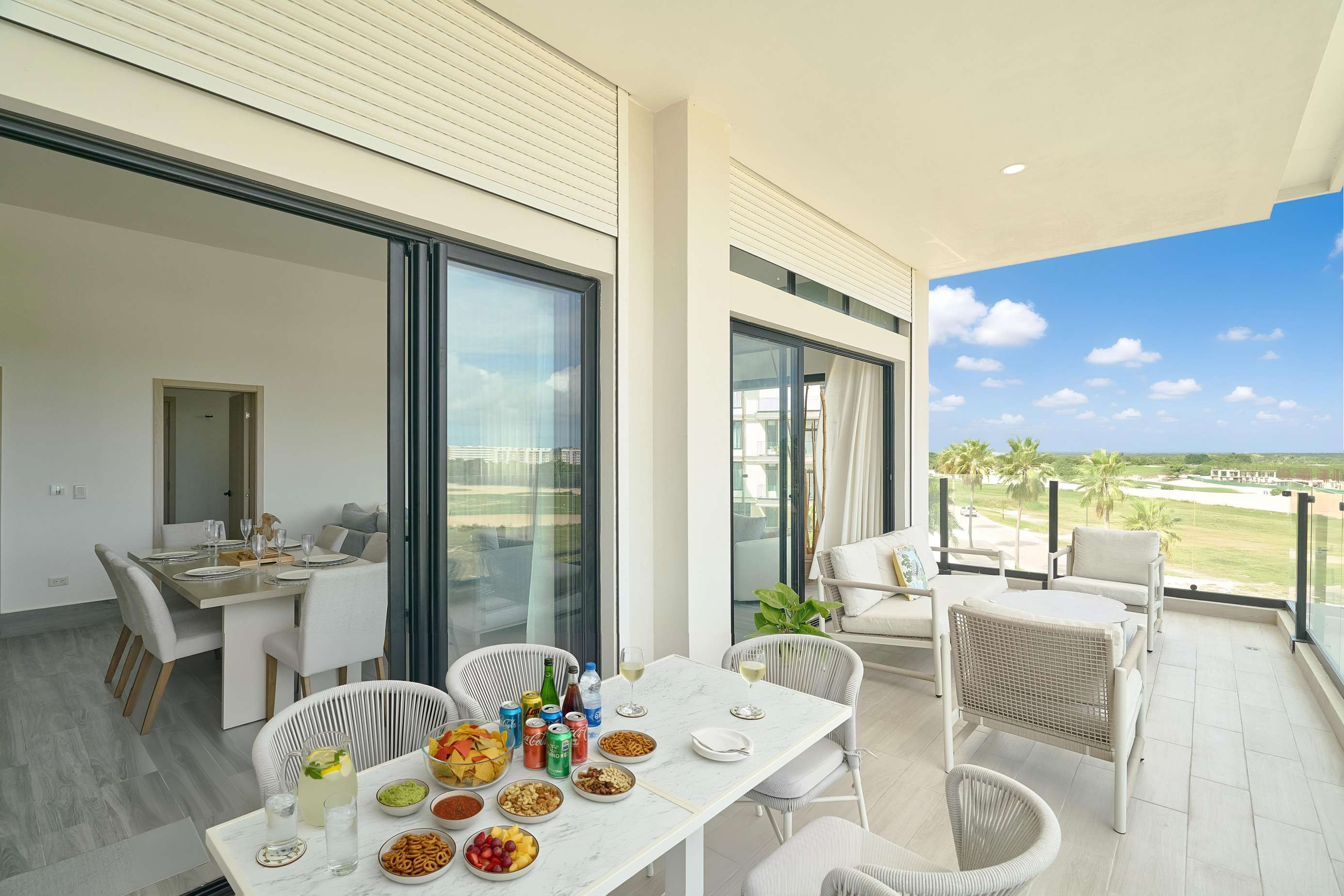 This amazing apartment is ideal for a family escape or a trip with friends. It features 3 bedrooms, all with A/C, 2 full bathrooms, a fully equipped kitchen, and spacious living and dining areas designed for comfort and relaxation. Enjoy peaceful mornings and breezy afternoons from the private balcony with beautiful golf course views. The condo is tastefully furnished with high-quality furniture and equipped with all necessary appliances to make your stay effortless and enjoyable.
